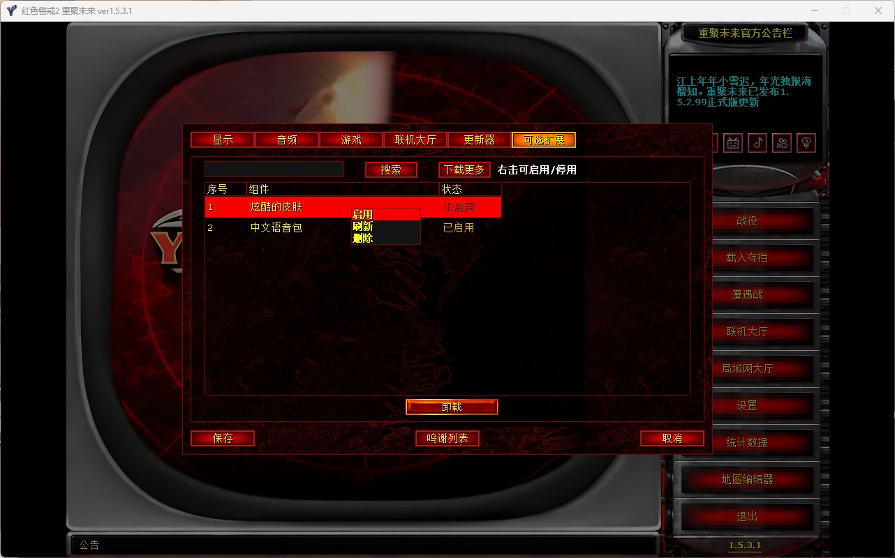 一个主要面向中国用户的红警2第三方客户端,包含红色警戒2完整游戏、尤里的复仇资料片、共和国之辉mod、第三帝国mod,开启红警2全新体验。