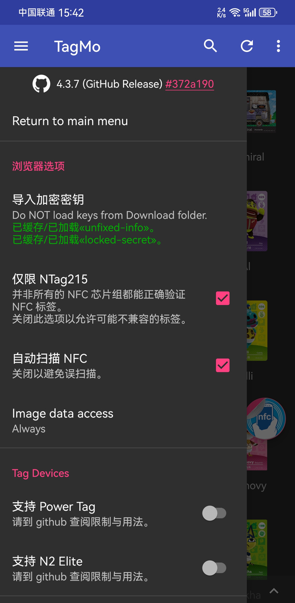 3.打开TagMo软件,起始TagMo Settings里导入 unfixed-info.bin 和 locked-secret.bin 两个密钥文件,此两文件在”!Essential Files“目录里可以找到。
